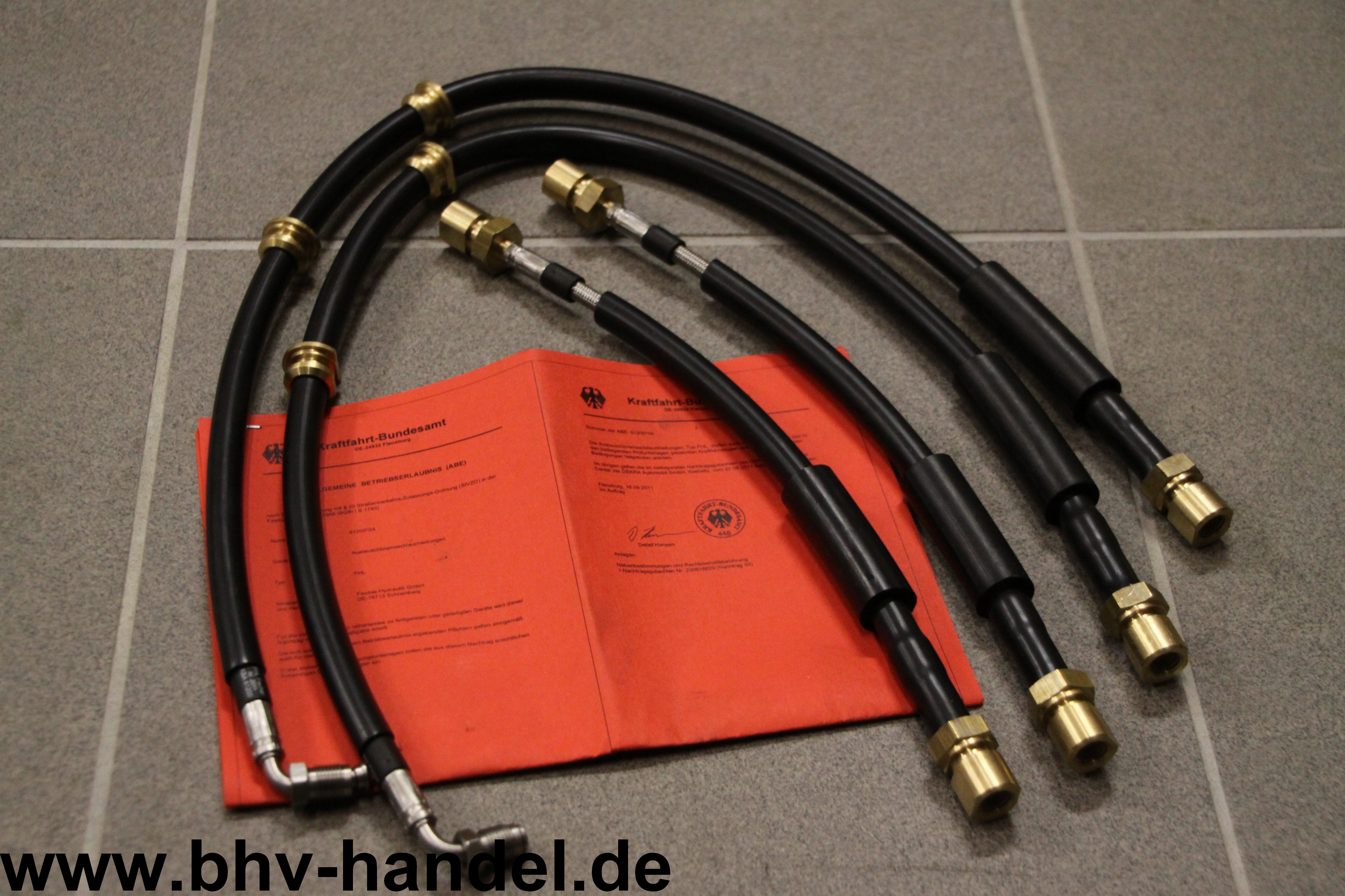 Der Satz Stahlflexbremsschläuche ist montagefertig incl. Gutachten für die Eintragung.